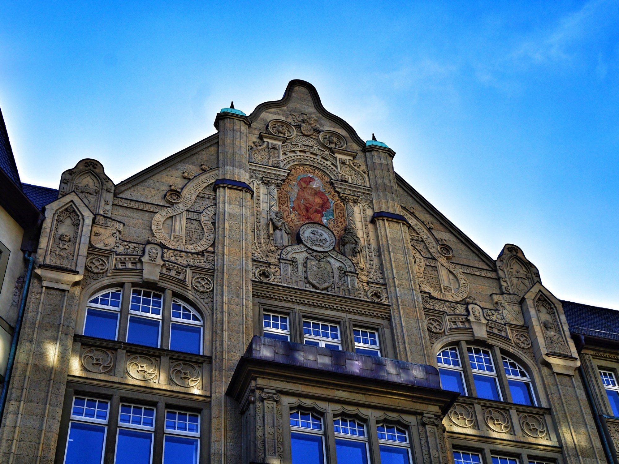 Aside from lavish floral and mythical ornaments, one can also find the patriotic ones, reflecting the climate of the period (for an example a relief of Otto von Bismarck)