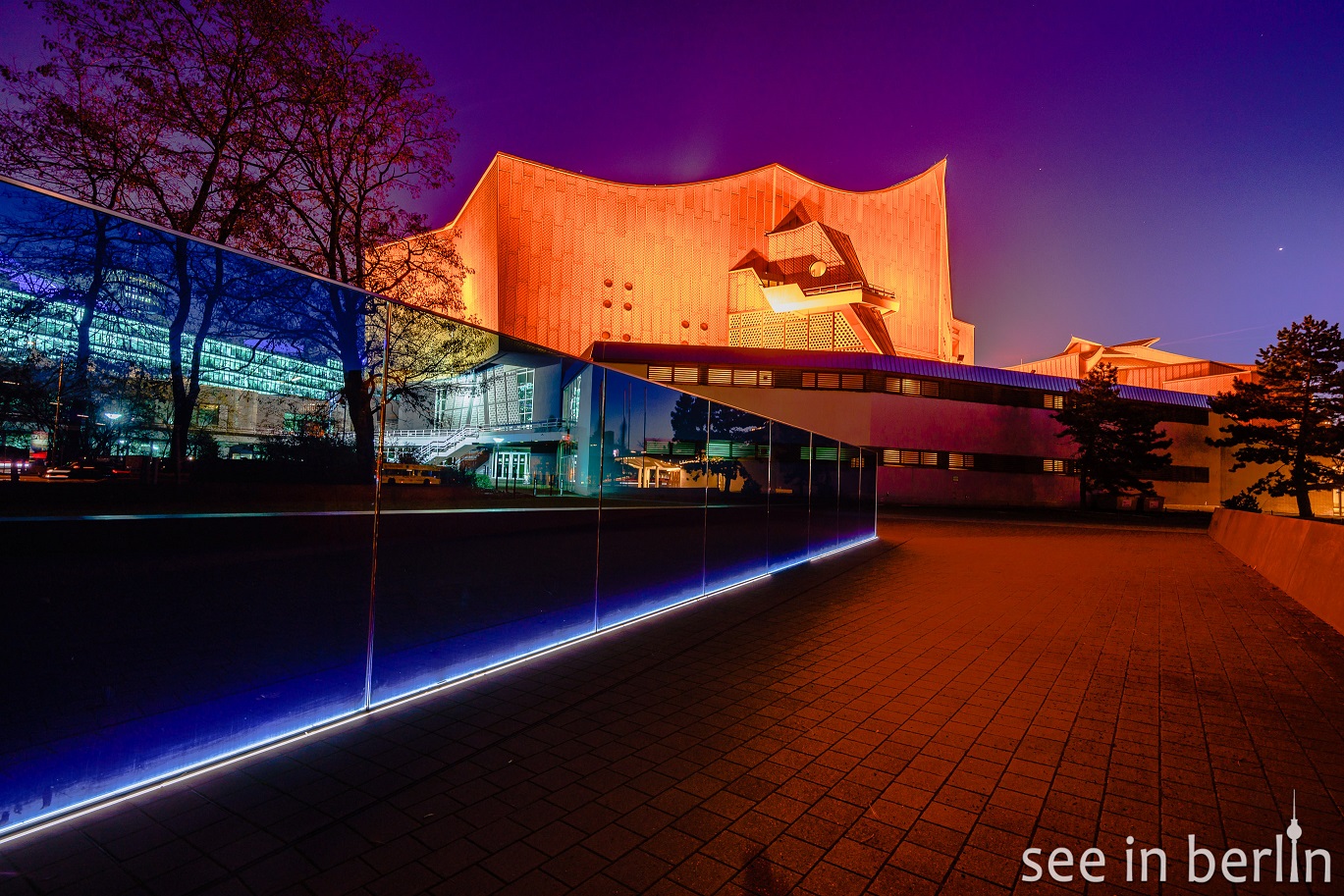 The Berlin Philharmonie building is located in the center of Berlin, just west of the Potsdamer Platz.
